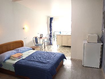 🌟 Особенности: • Яркий и тёплый – большое окно наполняет пространство светом, а хорошая теплоизоляция создаёт уют в прохладные дни. • Компактная кухонная зона со всем необходимым: плитка, холодильник, микроволновка и набор посуды. • Балкон с видом на море и горы – место для утреннего кофе и вечерних разговоров.
